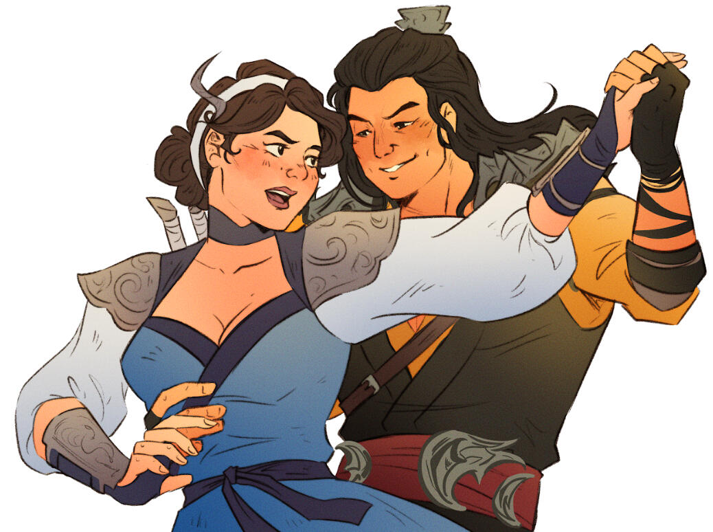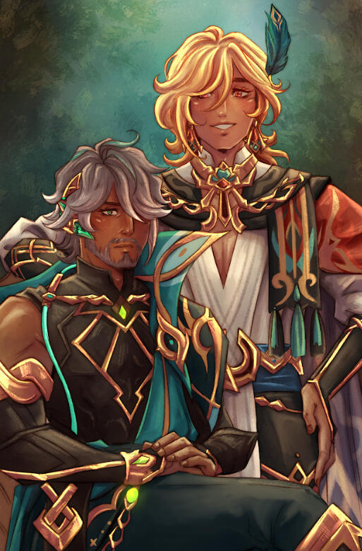 FULLY RENDERED HALF BODY ( 2 CHARACTERS + BACKGROUND )